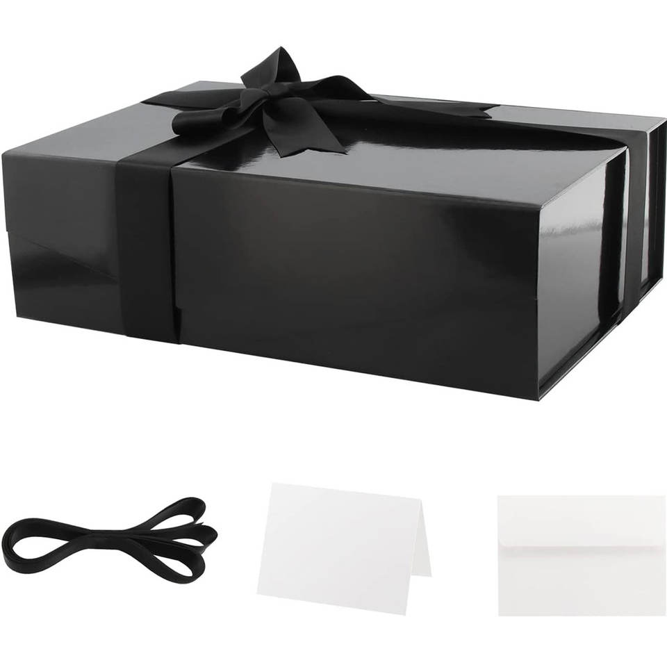 Boîte cadeau avec ruban et carte de vœux vierge, boîte cadeau magnétique noire pour cadeau, boîte de proposition de garçon d'honneur pour toutes les occasions