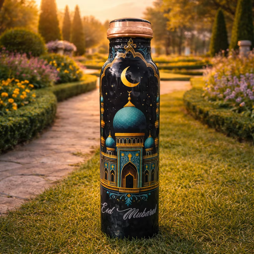 Cadeau pour l'Aïd : Bouteille de bière transparente anti-fuite, style bouteille, imprimée cuivre floral, pour usage hôtelier et rangement esthétique en cuisine