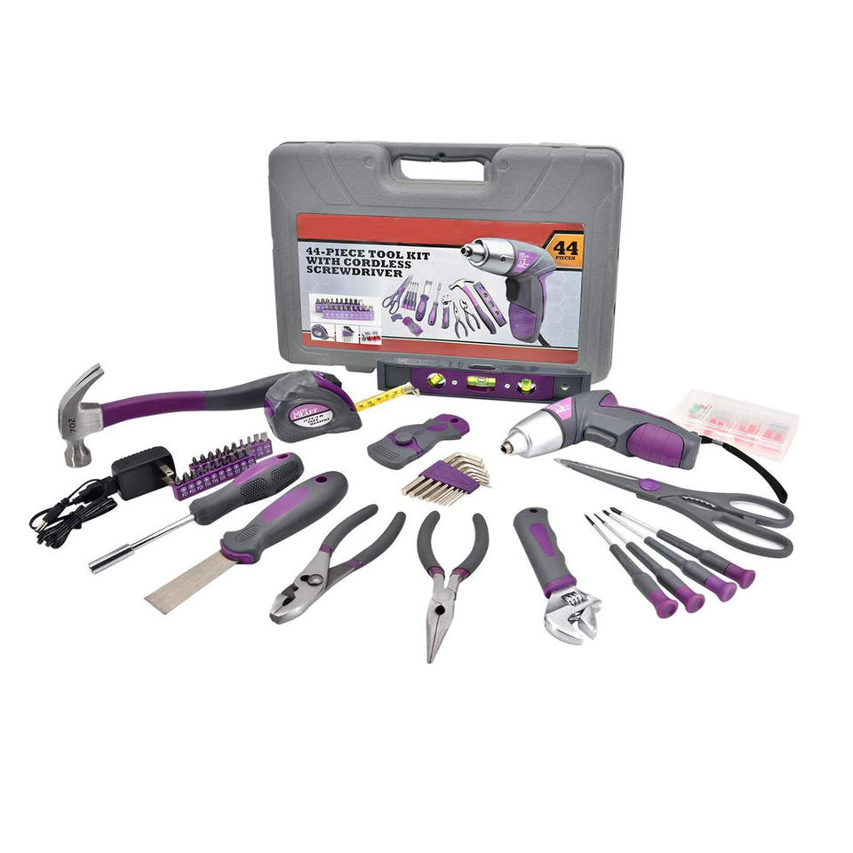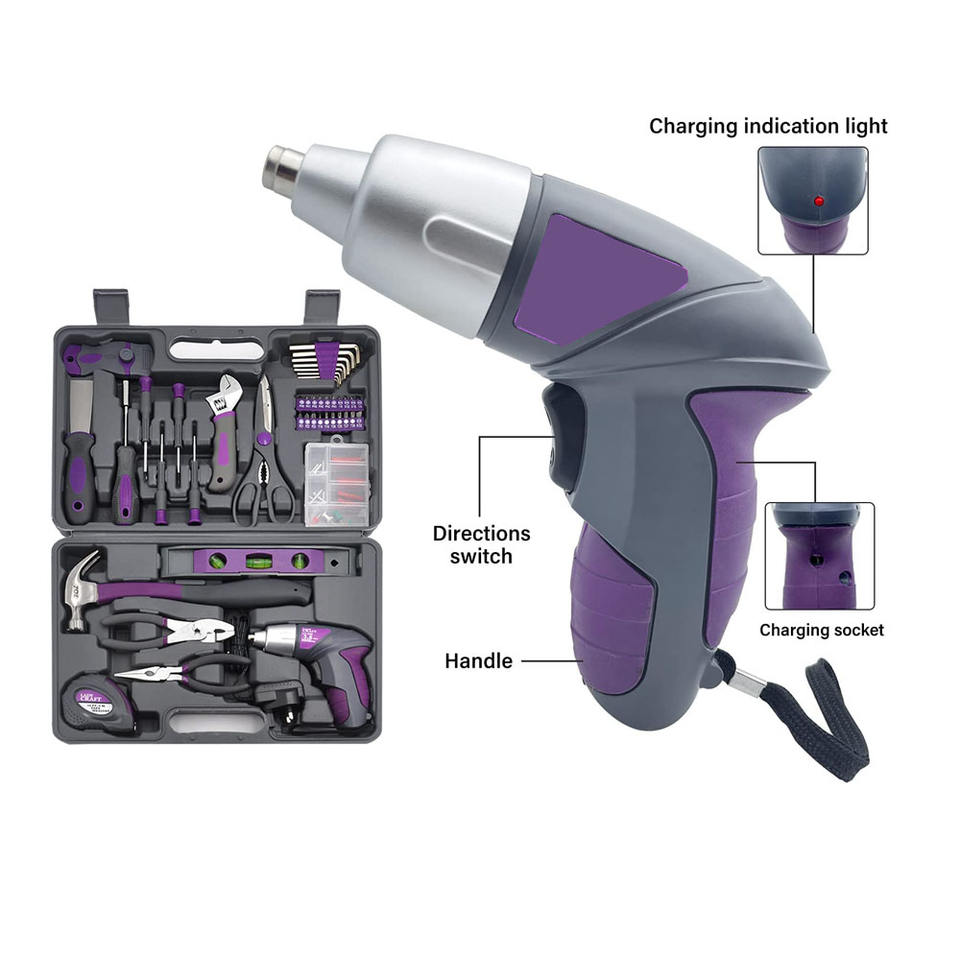 Cadeau Couleur Rose Lady 3.6V/4V Tournevis sans fil Set Home Repair Toolbox Hand Tool Kit Storage Case
