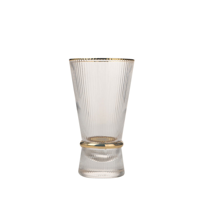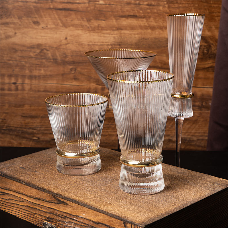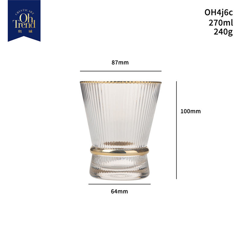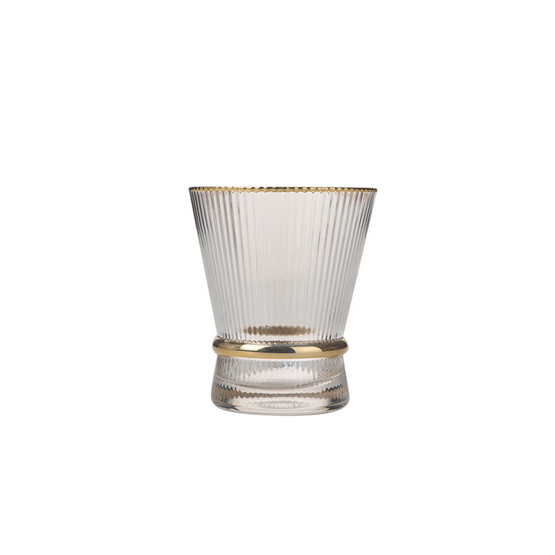 Coffret cadeau souvenir 270ml 9oz or rim ribbeds line insolite graver frozen whiskey wedge glass for party