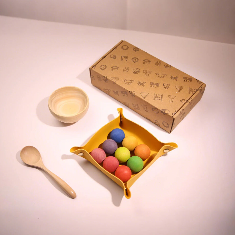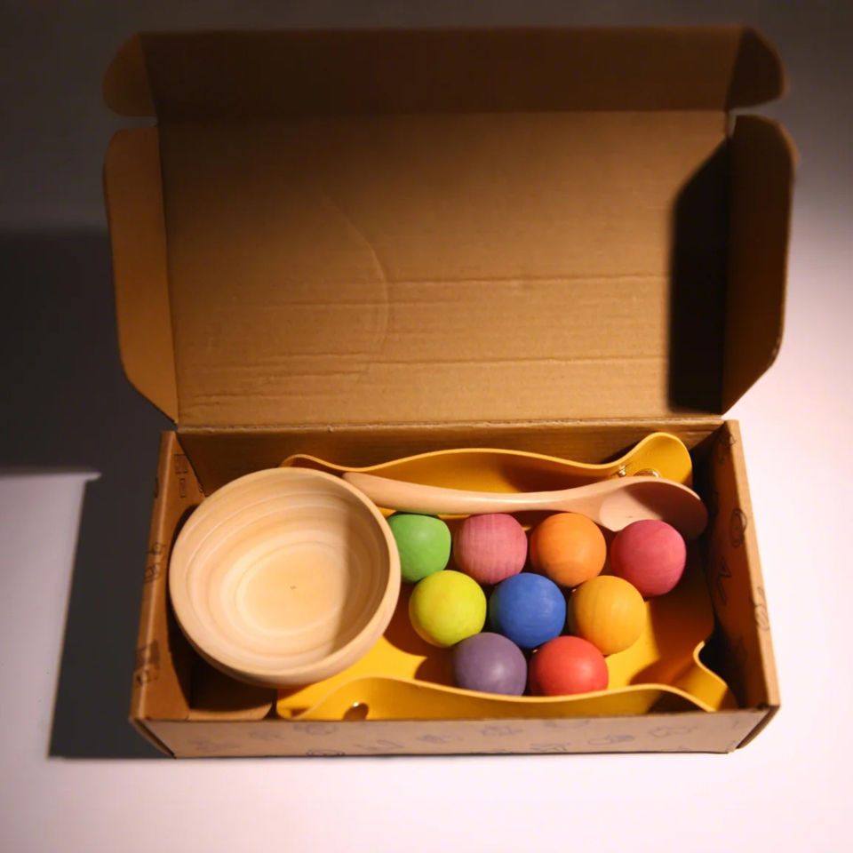 Jeu de boules dans des bols en bois Montessori Jouet de tri des couleurs Coordination œil-main Motricité fine Set de jouets Edu pour enfants