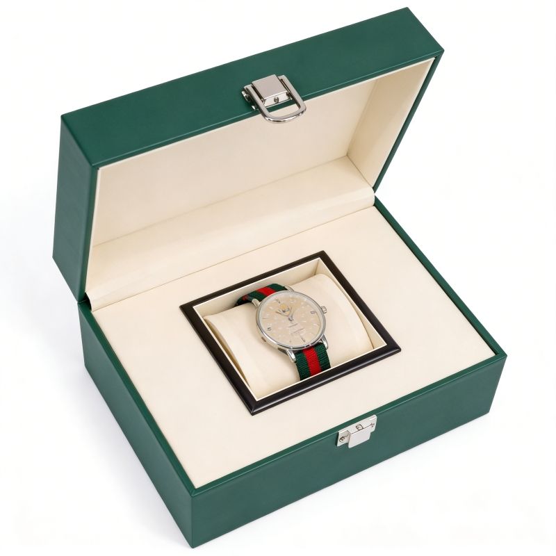 Boîte à montre de luxe personnalisée en cuir PU rigide, emballage de bijoux, insert en daim pour montre, gaufrage de logo personnalisé, prix de gros
