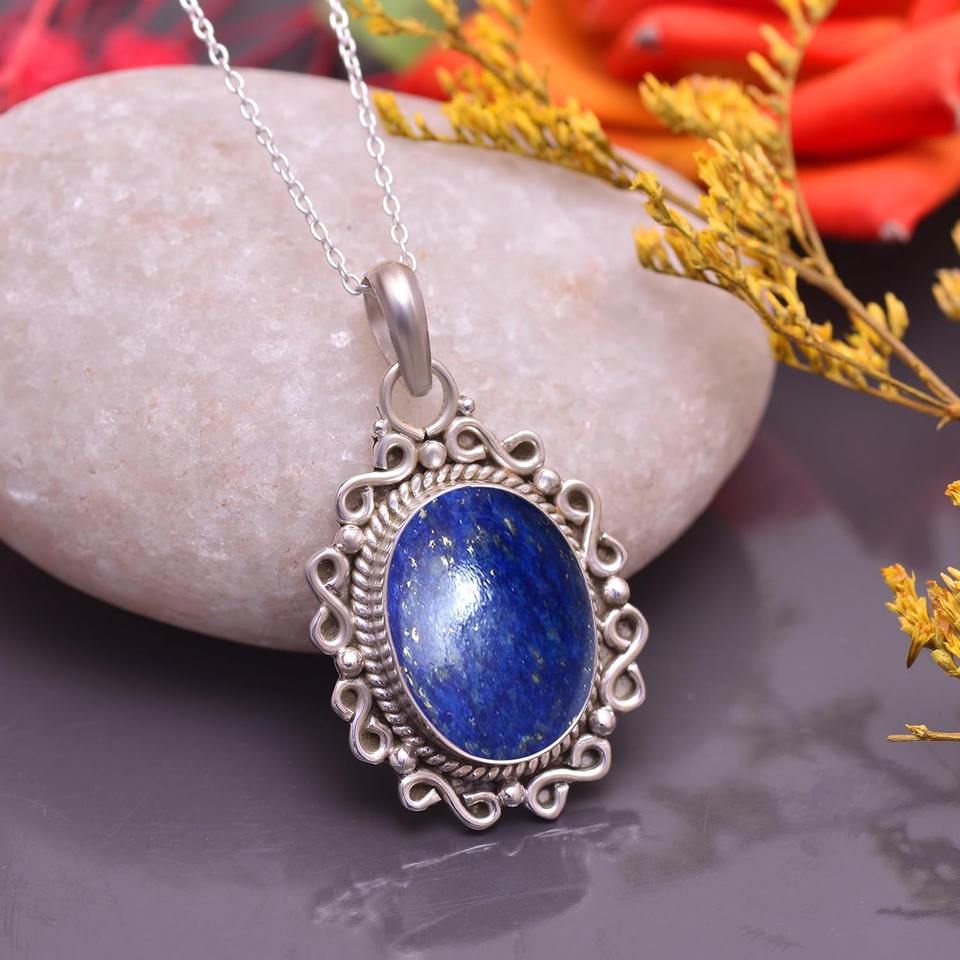 Gift for Love Lapis Lazuli Gemstone Best Design Pendant Necklace 925 Sterling Silver Lapis Pendant with Stamped Pendant Jewelry