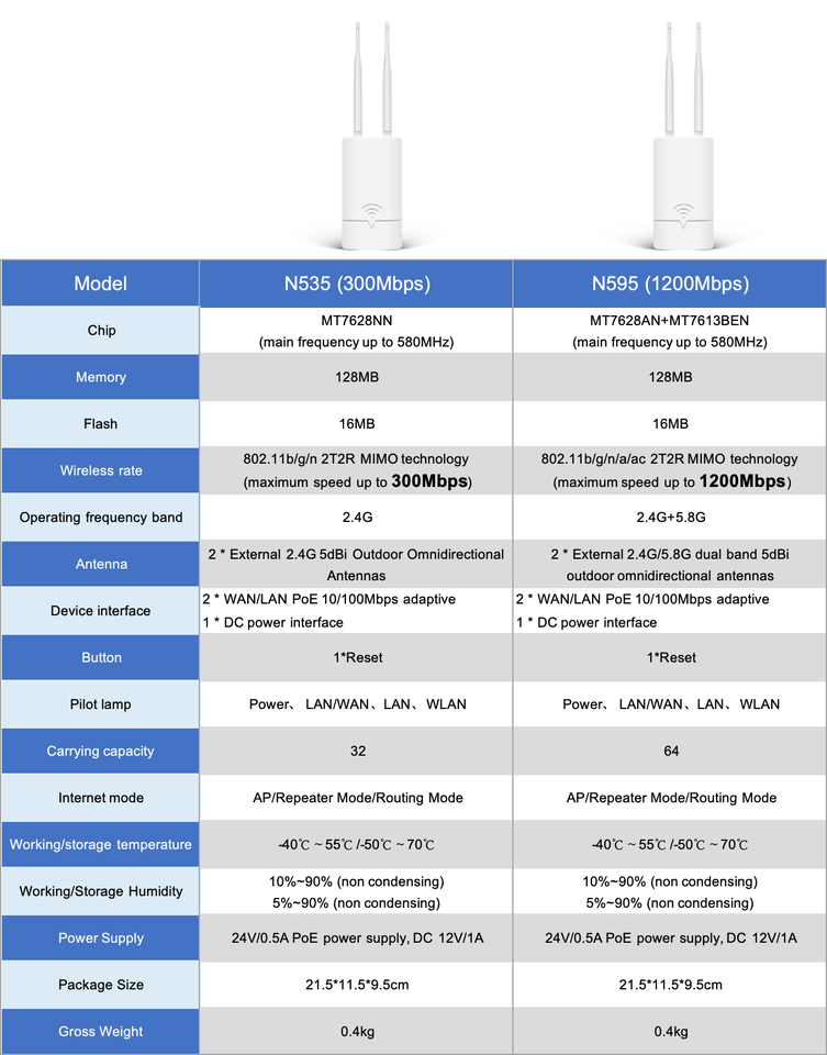2.4G Wi-Fi Taux de Transmission:300 Mbps