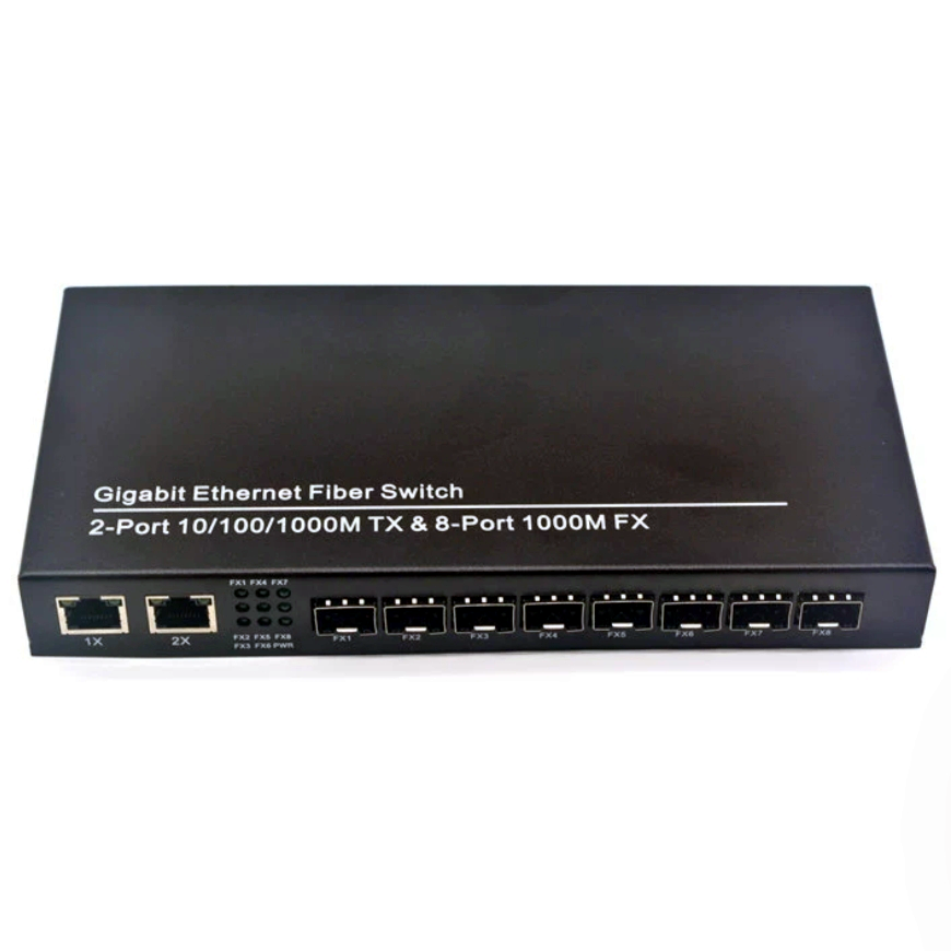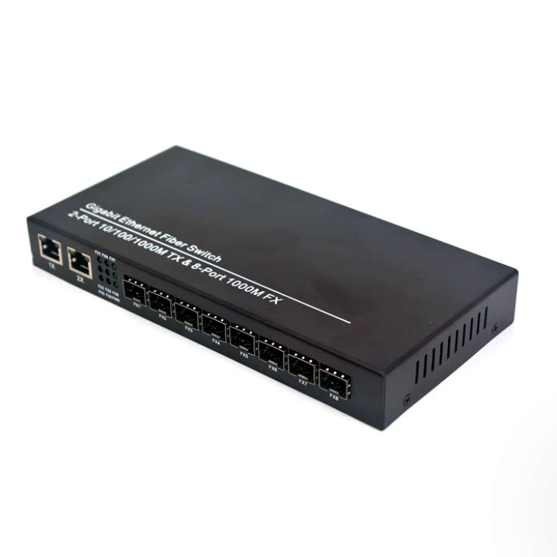 Switch Fibre Gigabit 8 Ports SFP 2 Ports RJ45 Convertisseurs de Média 1000M Convertisseur de Média Ethernet