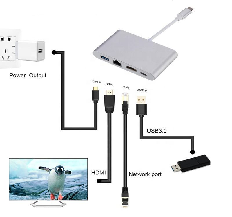 Numéro de Type:TYPE-C to RJ45 USB HD MI USBC Gigabit