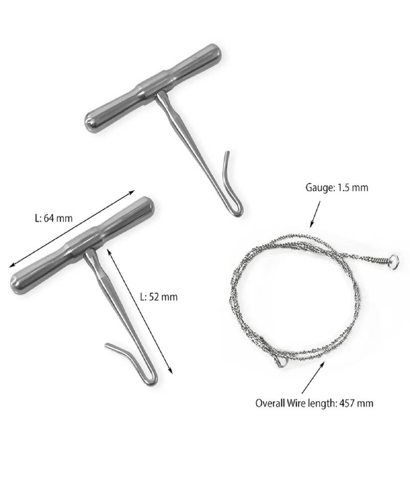 Kit d'outils chirurgicaux réutilisables pour la neurochirurgie et l'orthopédie, comprenant un ensemble de lames de scie Gigli à deux poignées en acier inoxydable de qualité supérieure pour la coupe osseuse