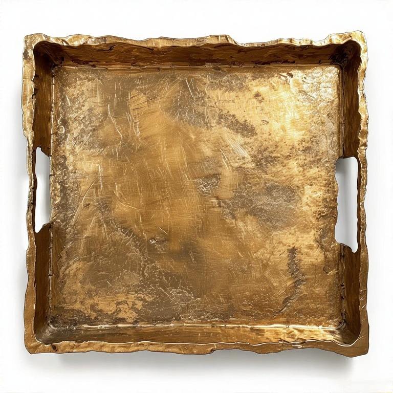 Plateau rectangulaire à cadre doré avec poignées épaisses en aluminium moulé à haute brillance et base plate équilibrée pour l'hébergement de qualité supérieure