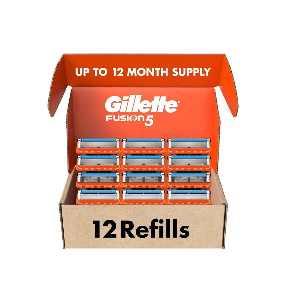 Recharges de lames de rasoir Gillette Fusion5 pour hommes, lot de 12, avec bande lubrifiante pour un rasage plus confortable