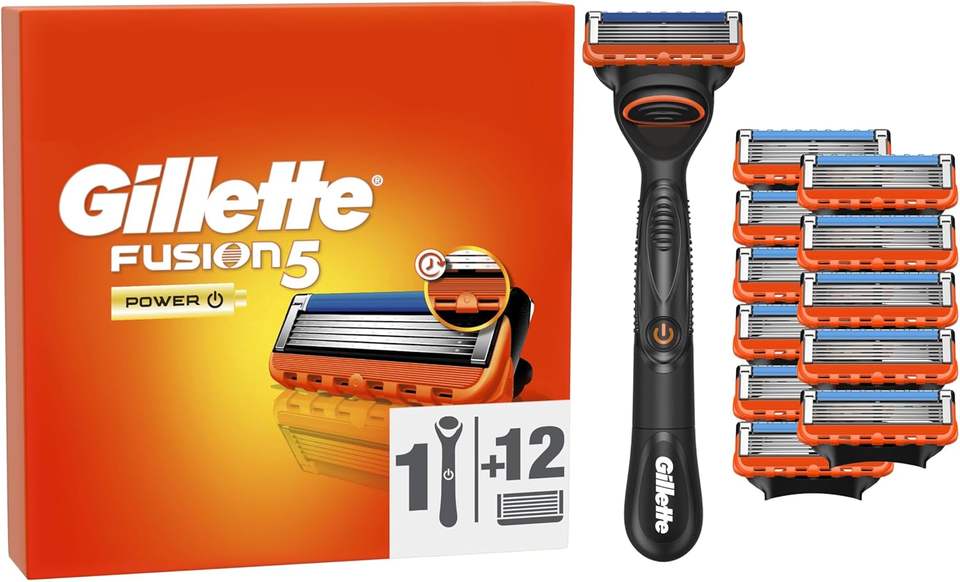 Gillette Fusion5 Power Razor pour homme, avec bande de lubrification supérieure pour un rasage en douceur et 5 rasoirs 1 manche, 12 lames de rechange