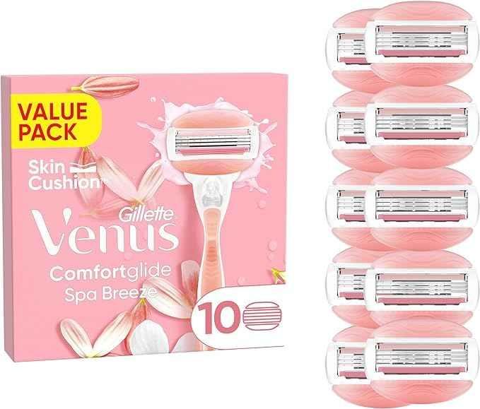 Gillette Venus Comfortglide Spa Breeze Women's Razor Blade Refills, Pack of 10, 3 Built-in Blades for a Smooth