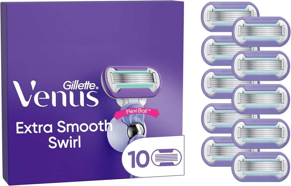 Gillette Venus Deluxe Smooth Swirl Women's Razor Blade Refills, Pack of 10, 5 durable blades to deliver an extra smooth shave