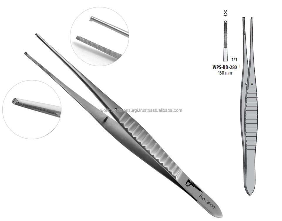 Pinces de dissection de précision Gillies, 12 dents, mâchoires dentelées délicates, acier inoxydable de qualité médicale, pour tissus chirurgicaux