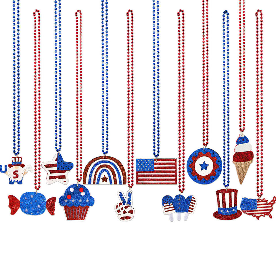 Collier pendentif drapeau Fête de la Maison de Pain d'Épices, décorations écologiques non toxiques en feutre et chaîne de perles en plastique pour le Jour de l'Indépendance