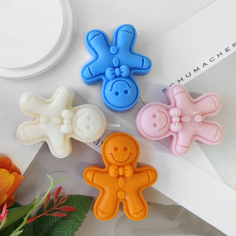 Bougie parfumée à la rose en forme d'homme en pain d'épices pour la détente à la maison, idéale pour offrir en cadeau
