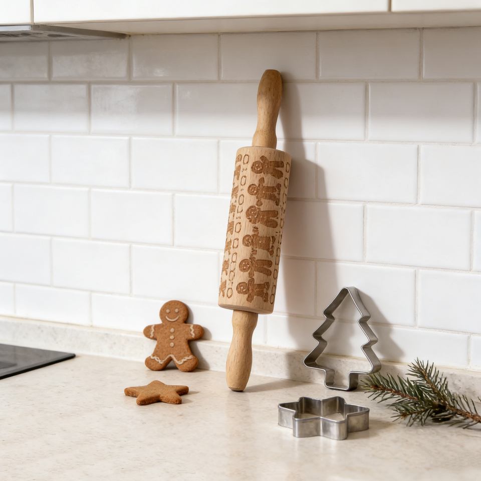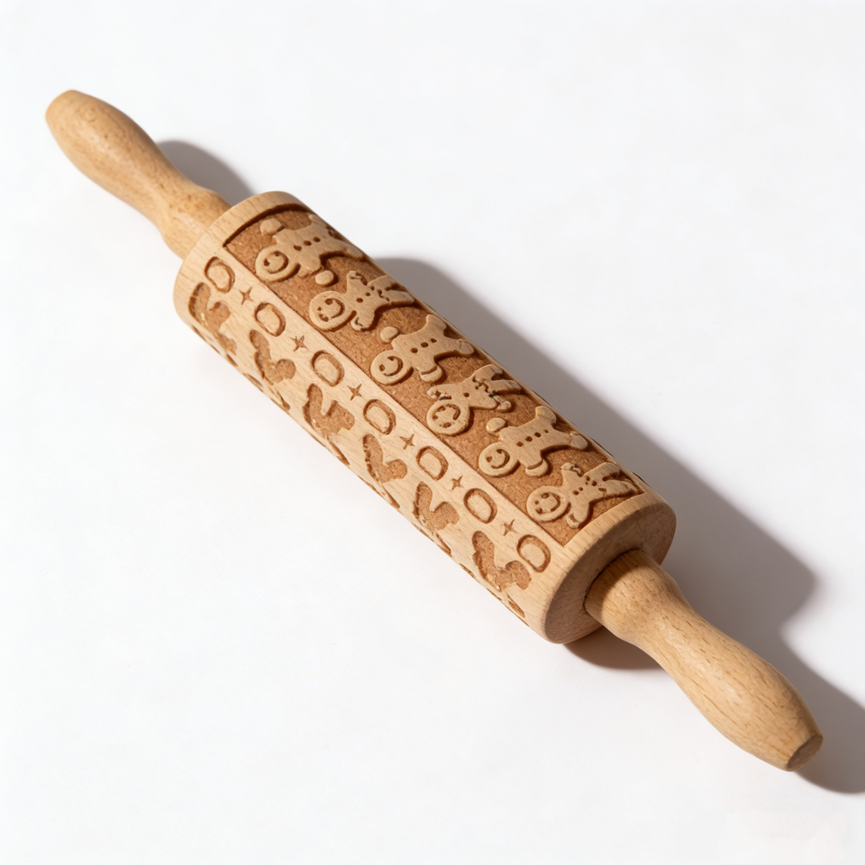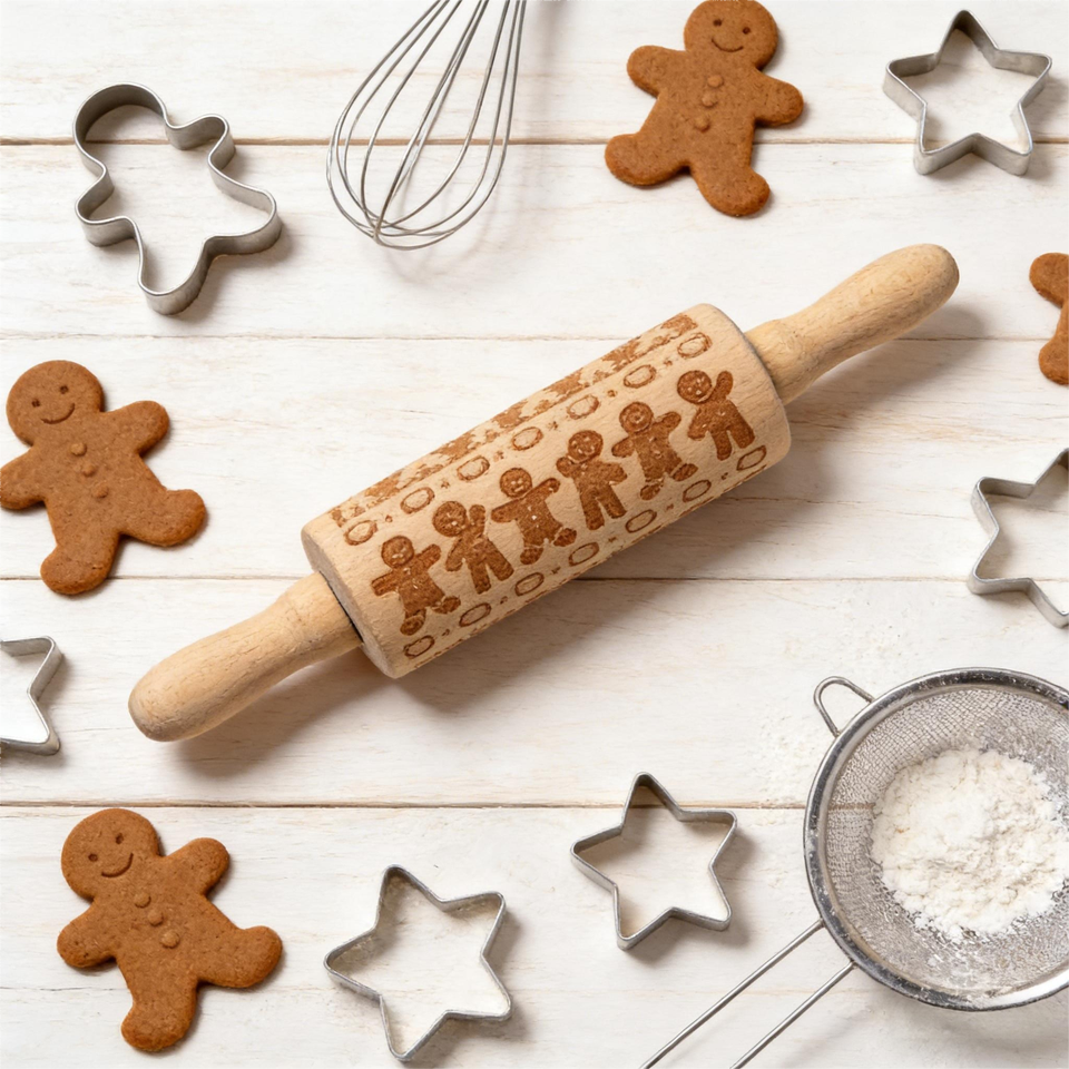 Gingerbread Pattern Pastry Roller Embossed Mini Rolling Pin Kids French Wooden Rolling Pin Baking for Pastry Dumpling