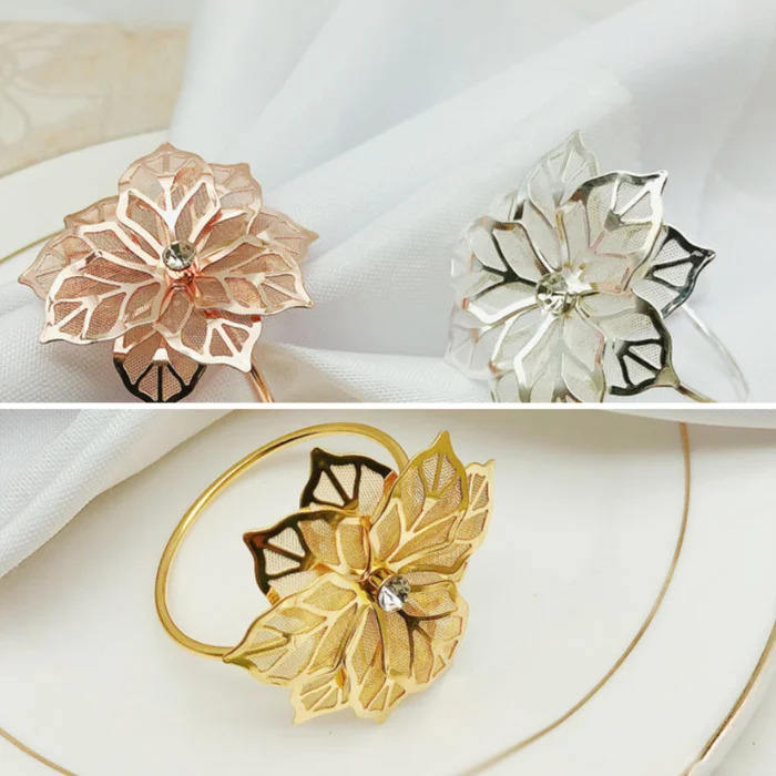 Gingko Feuilles Forme De Mariage Dîner Table métal or Couleur rond de serviette pour décoration de table d'anniversaire Porte-serviettes