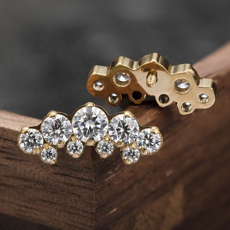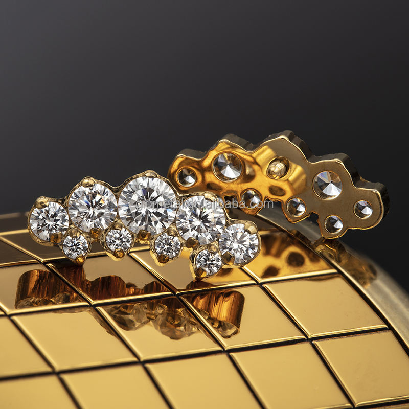 Giometal ASTM F136 Titane PVD Or 18K Gemmed Double Croissant Sans Fil ou Fileté Tragus Conch Piercing Boucles d'Oreilles Corps