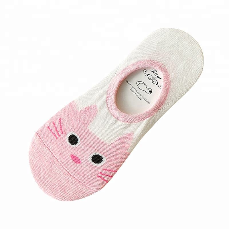Fille drôle Invisible mince chaussettes pantoufles doux coton Animal chat femmes été court coton décontracté chaussettes