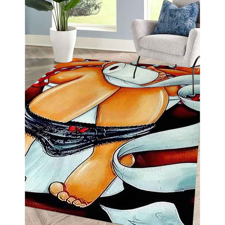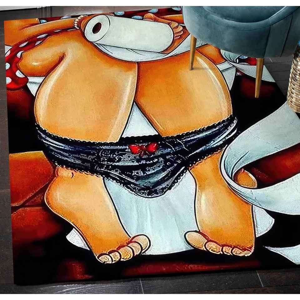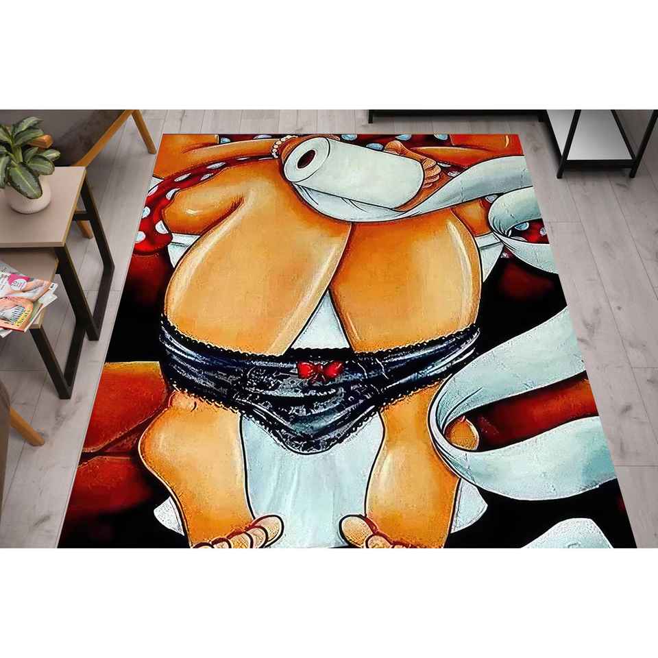 Tapis de salle de bain imprimé avec motif de fille sur le WC, tapis moderne pour salle de bain, tapis en velours