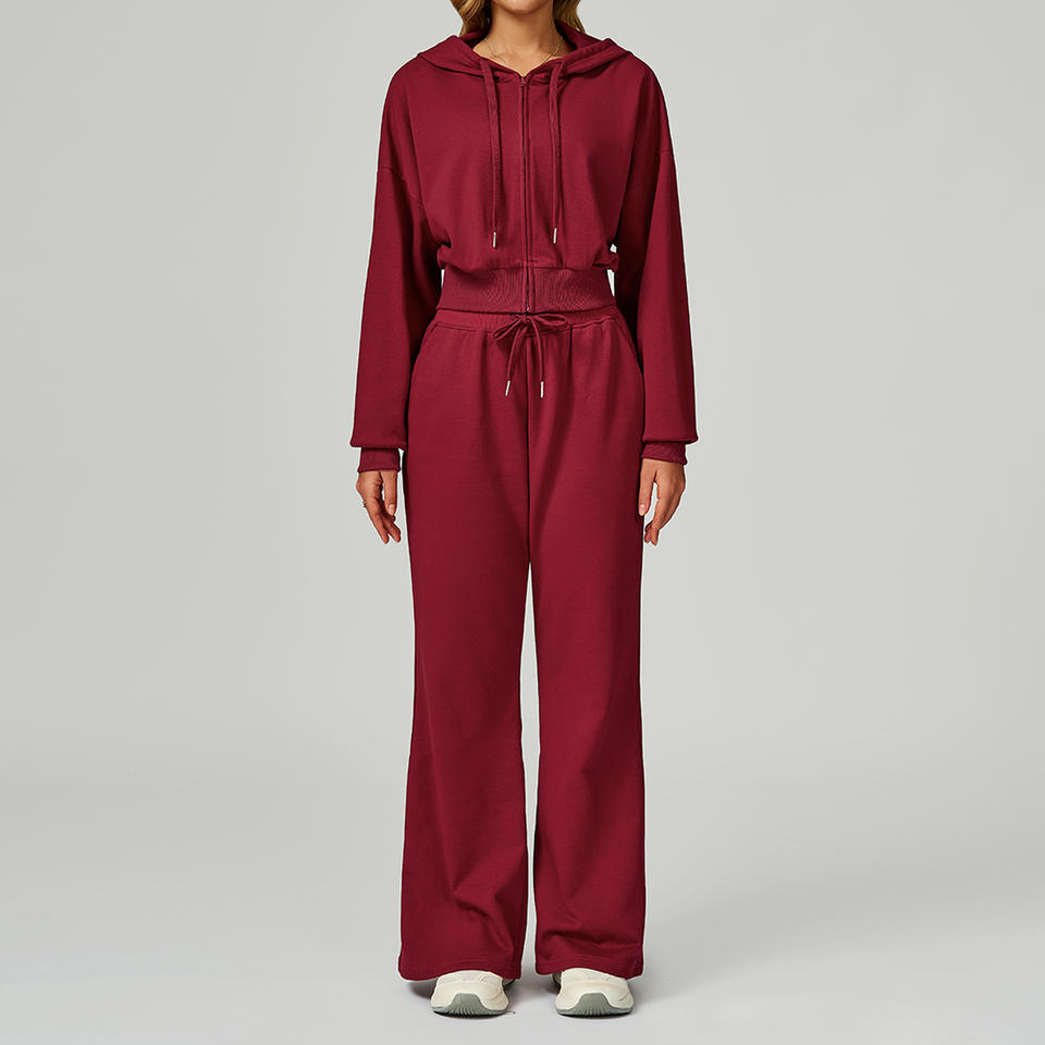 Girls Compression Comfortable Running Fitness Breathable Solid Cotton Zipper Hoodie Sweat Pants 2 piece set