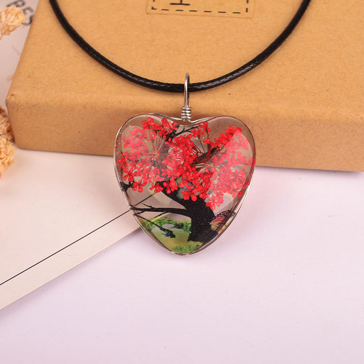 Chaque pièce vient dans le poly-sac individuellement, 100DZ/CTN Collier coeur unique arbre de fleurs séchées pour filles