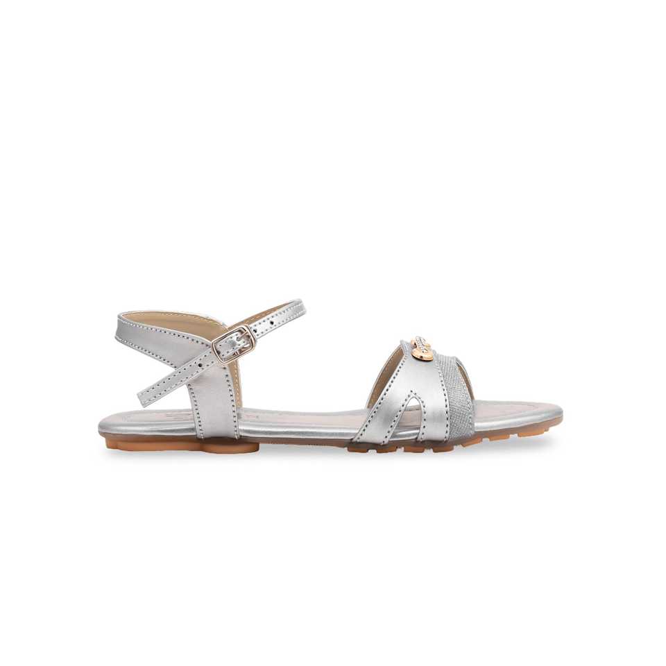 Girls' Fashionable Silver Heeled Sandal KD7847 Lightweight Slip-On Closure for Spring and Summer Seasons