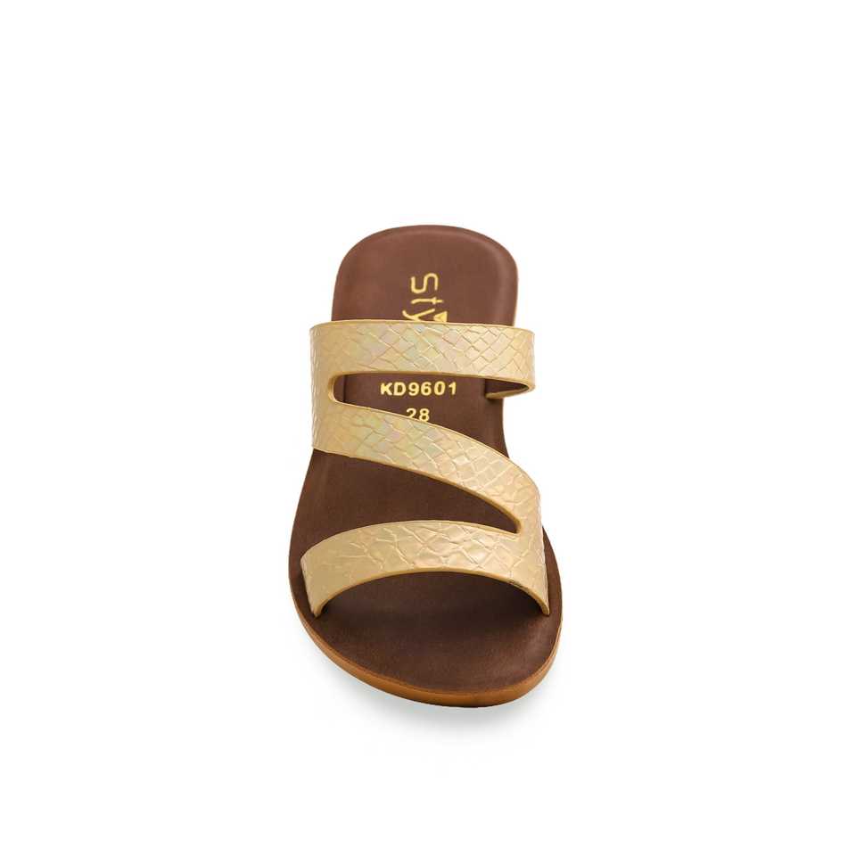 Girls' Golden Casual Slipper KD9601 Fashion Trend Flat Sandals Lightweight Printed TPR Insole Anti-Slip Breathable Recyclable
