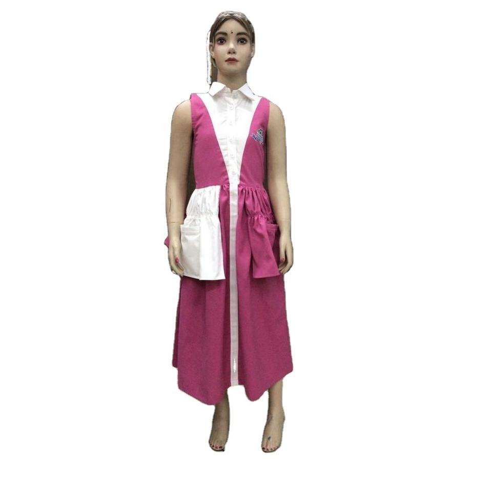 Uniforme scolaire pour filles, design fantaisie, OEM personnalisé, vente en gros, rose, haute qualité, tissé, sans manches, confortable, durable, respirant