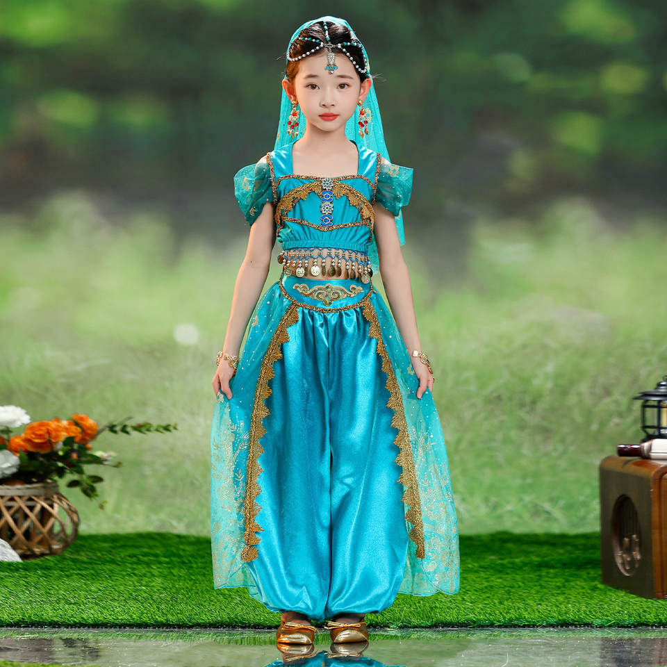 Ensemble de danse du ventre pour filles, style princesse, inspiration indienne et orientale, avec sari, costume de spectacle Bollywood pour enfants