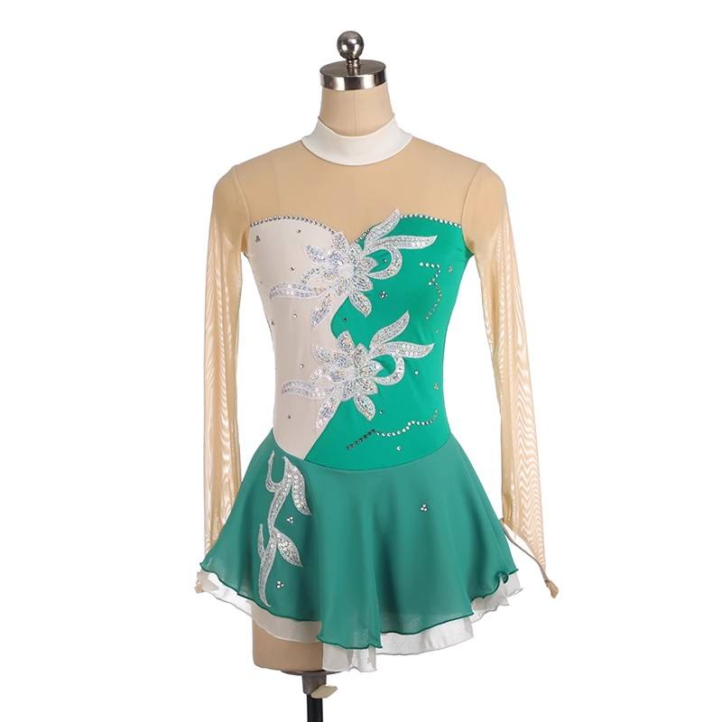 Filles Enfants Strass Maille Splice Figure Patinage Sur Glace Gymnastique Robe Salle De Bal Performance Dancewear Costume Groupe D'âge Enfants