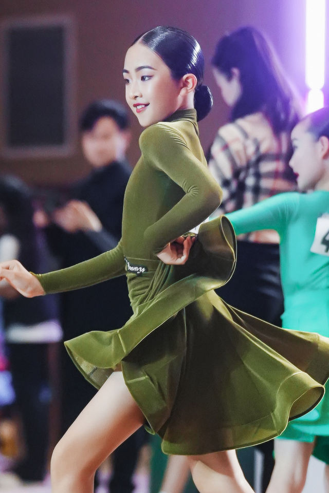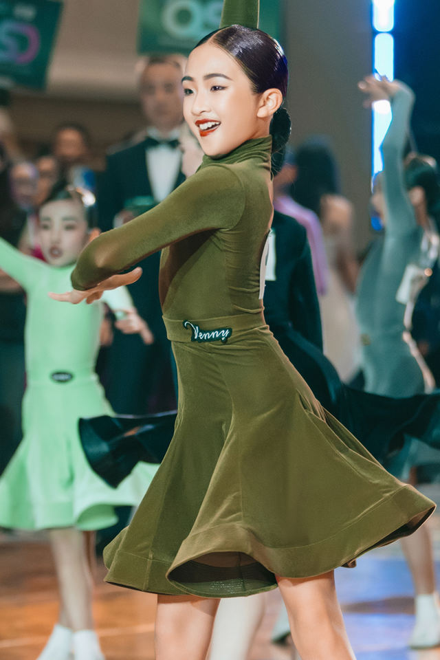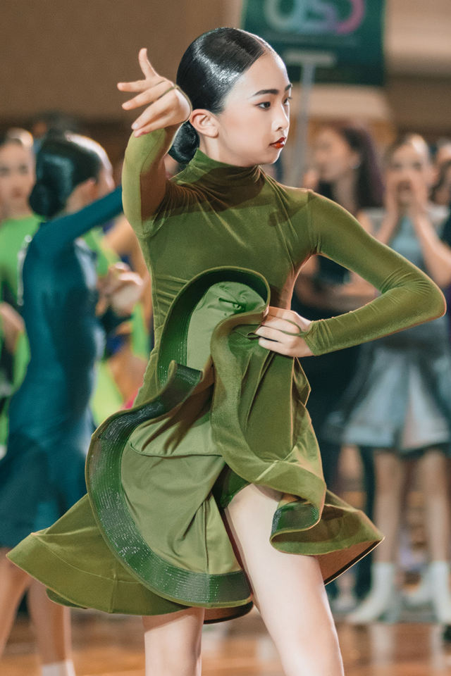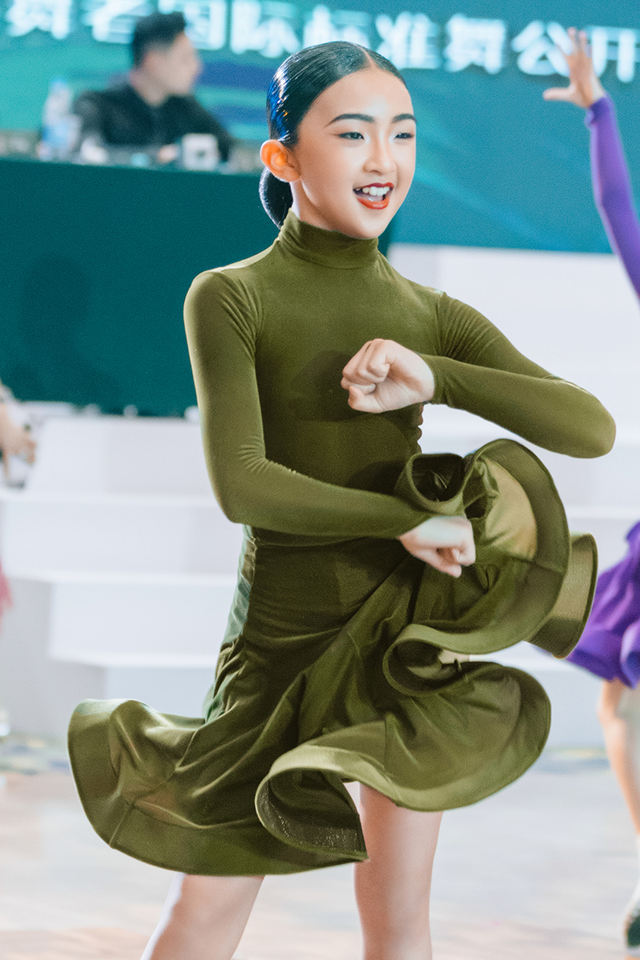 Tenue de Danse Latine pour Filles - Robe Tutu en Polyester à Manches Longues et Jupe, Col Montant, Fermeture à Crochets, pour Compétition et Entraînement Scénique