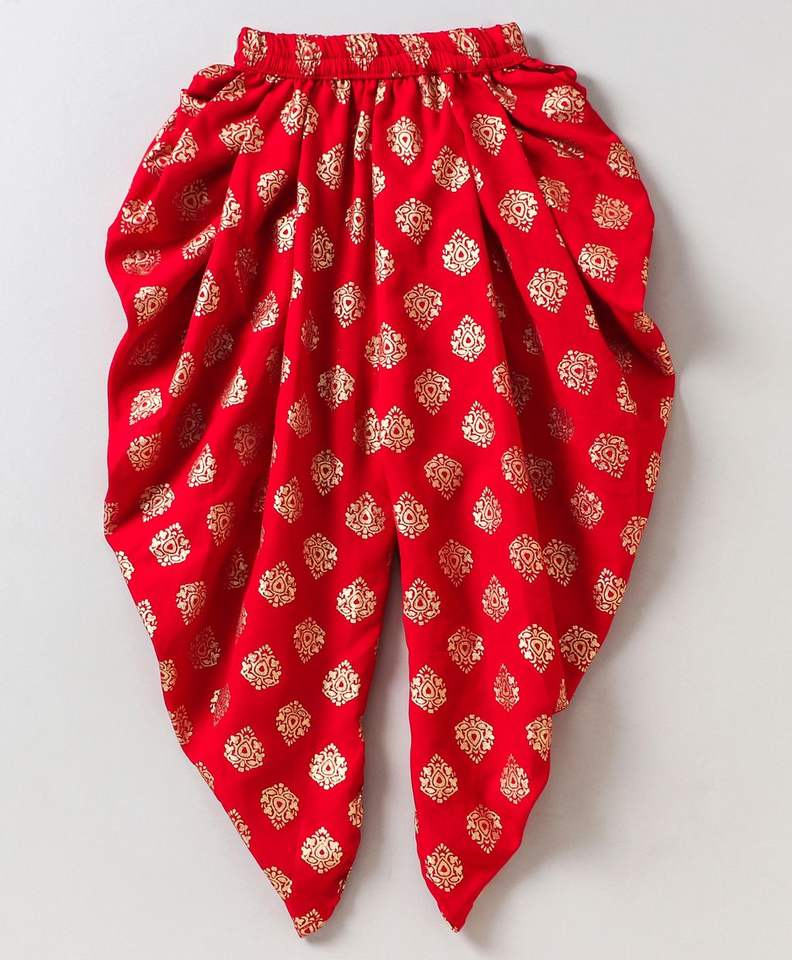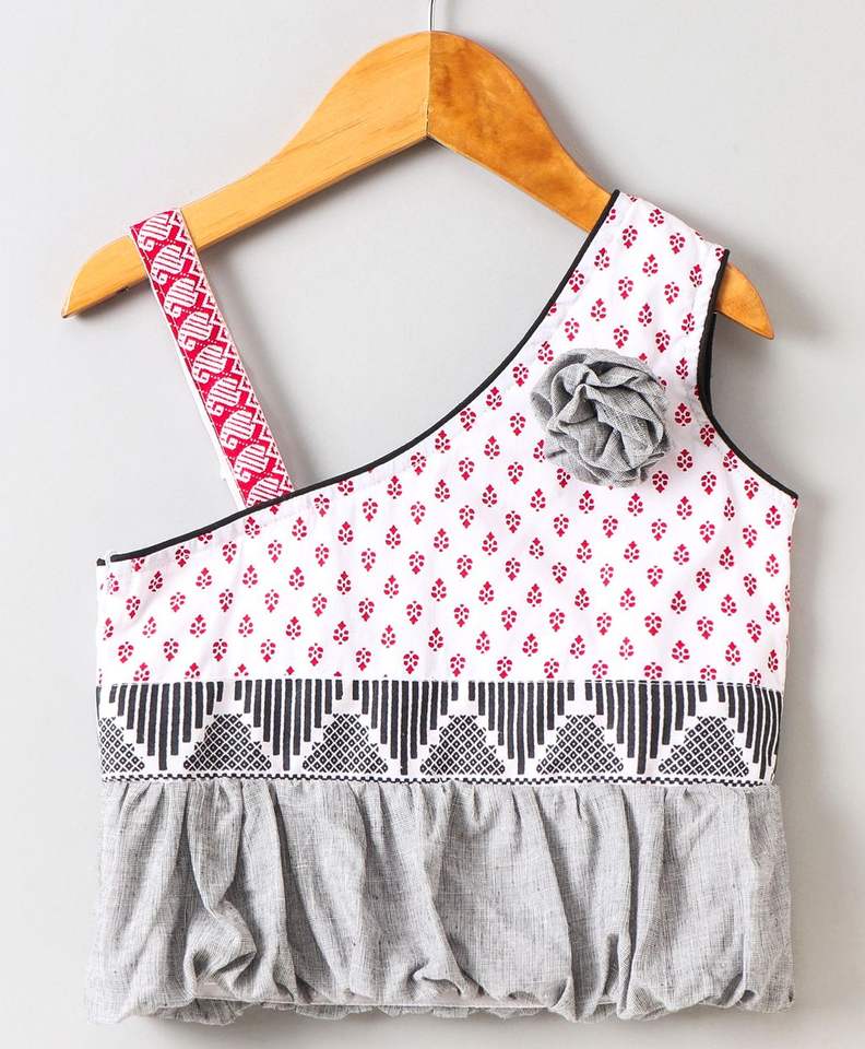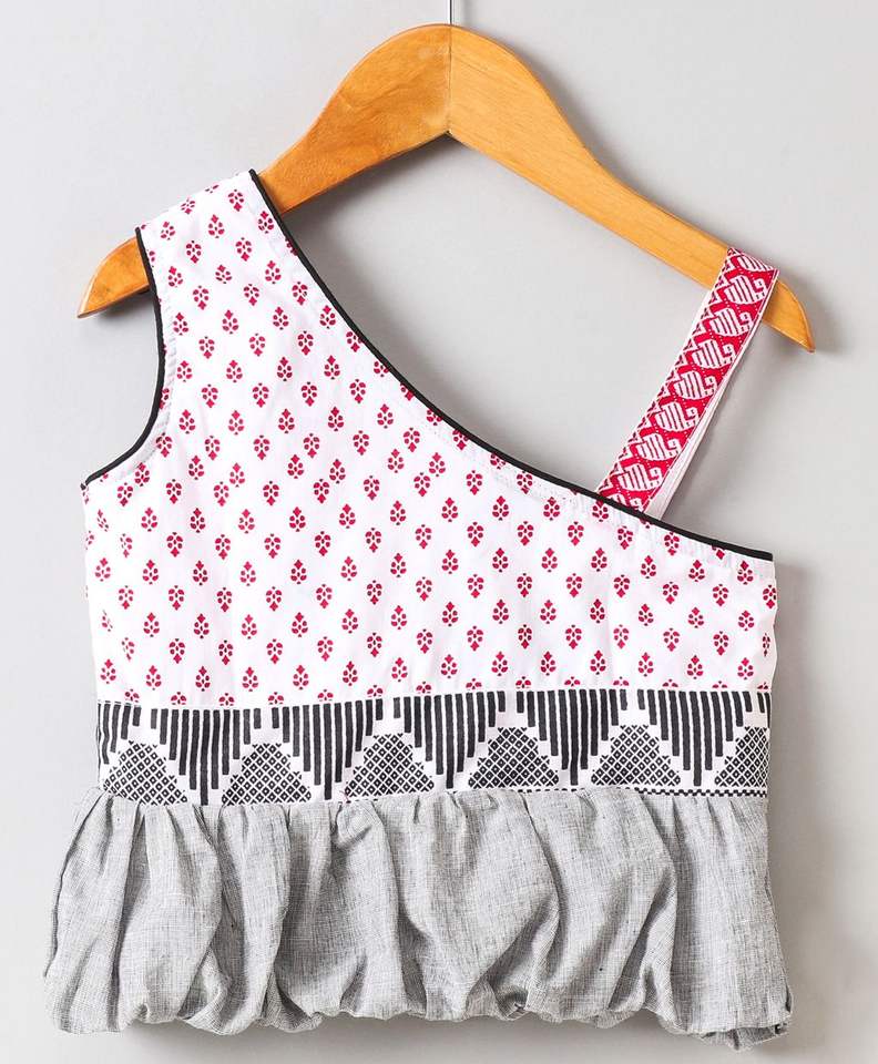 Twisha Ensemble Haut Asymétrique et Pantalon Dhoti Imprimé - Gris & Rouge