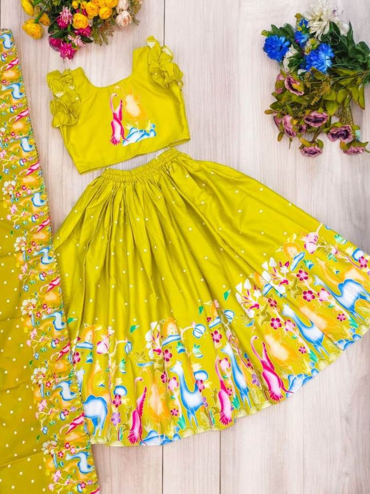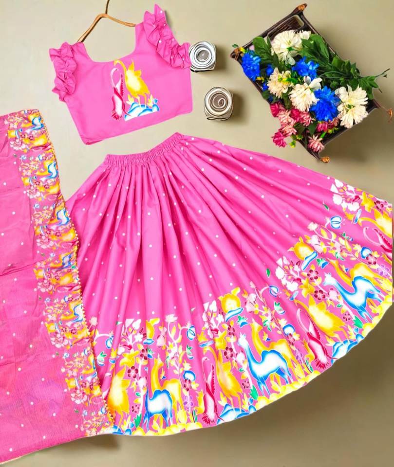 Robe brodée Readymade pour filles/Prêt-à-porter 3 pièces Lahenga Choli en coton imprimé et brodé pour filles en vente en ligne