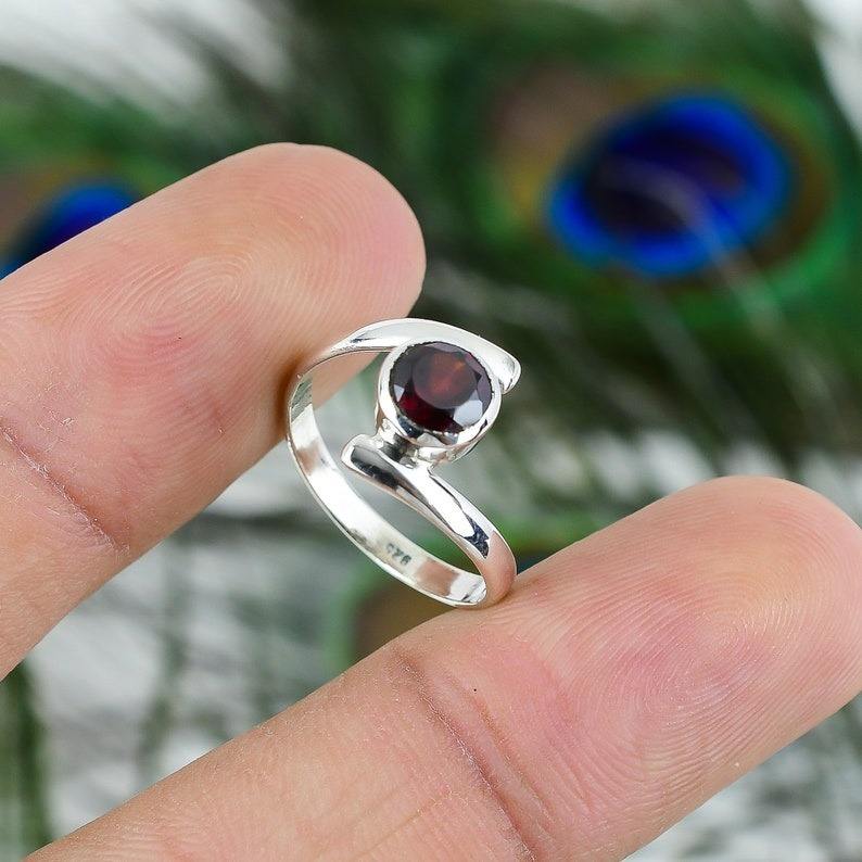 Bague simple pour filles, pierre précieuse grenat faite à la main, bague en argent sterling 925, bague grenat à la mode avec bijoux fins en argent estampillé 925