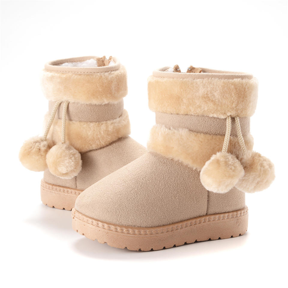 Girls Winter for Boots Cute Hairball Design High Top Anti-Proof Snow Boots Fur Lined PVC Upper Warmer School Shoes for Kids