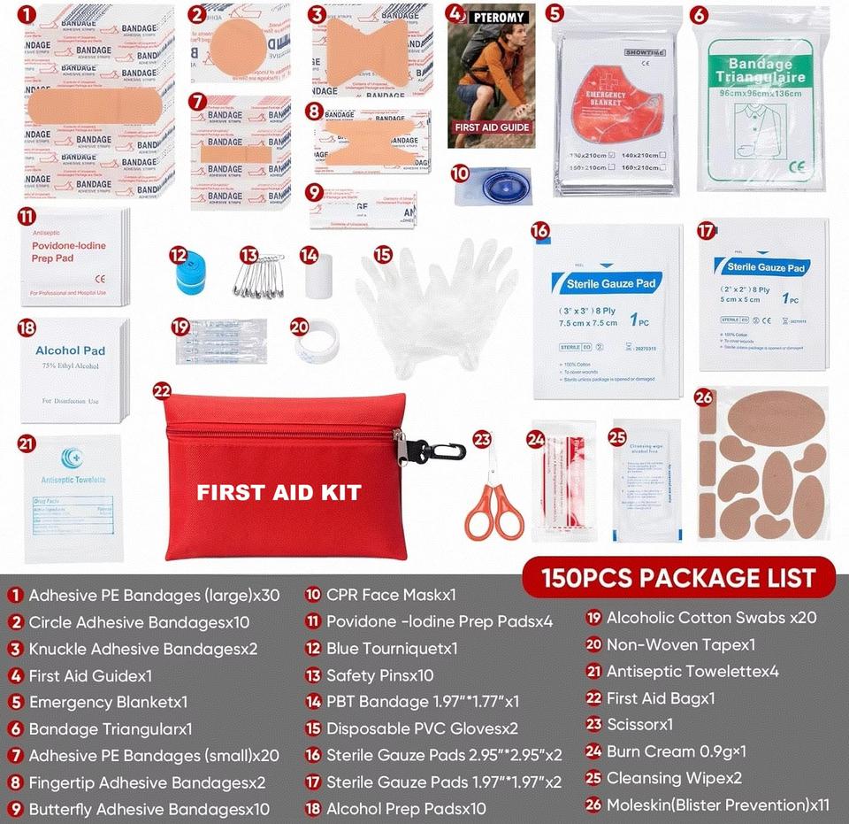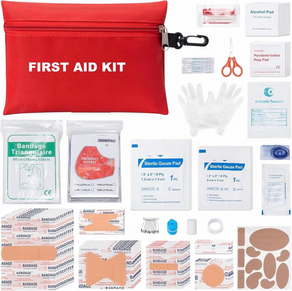 Cadeau de bienvenue : Trousse de premiers soins médicale d'urgence pour blessures, 176 pièces en un seul petit ensemble, personnalisable, format de poche, mini trousse de premiers soins de voyage