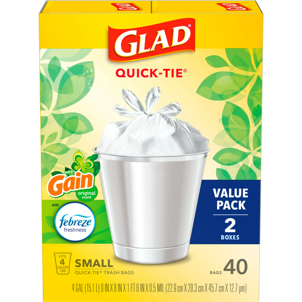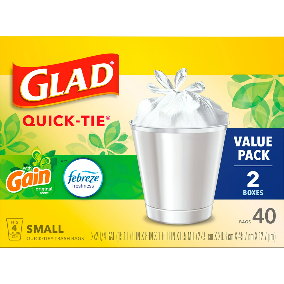 Sacs poubelle Glad en plastique épais transparent à fermeture rapide, capacité de 4 gallons, plus de 100 sacs