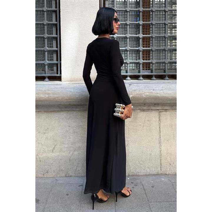 Robe longue Gladys Sandy, col en V profond, coupe fourreau, à nouer, tissée respirante, pour usage quotidien décontracté