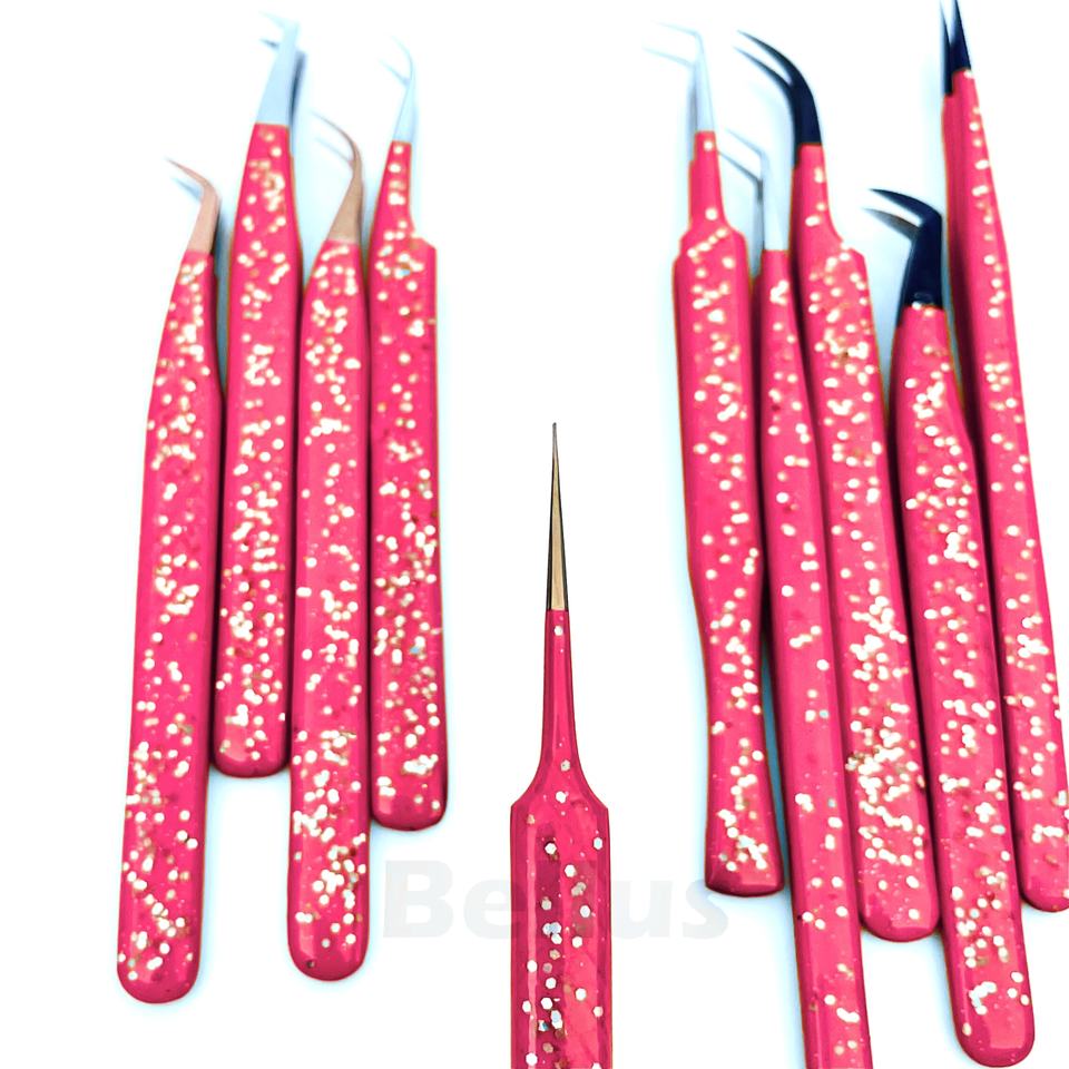 Glam Point Lash Tweezer Kit Blue Glitter Anti-Static Mixed Tip Tools for Grafting Extensions Precision Salon Ready Design