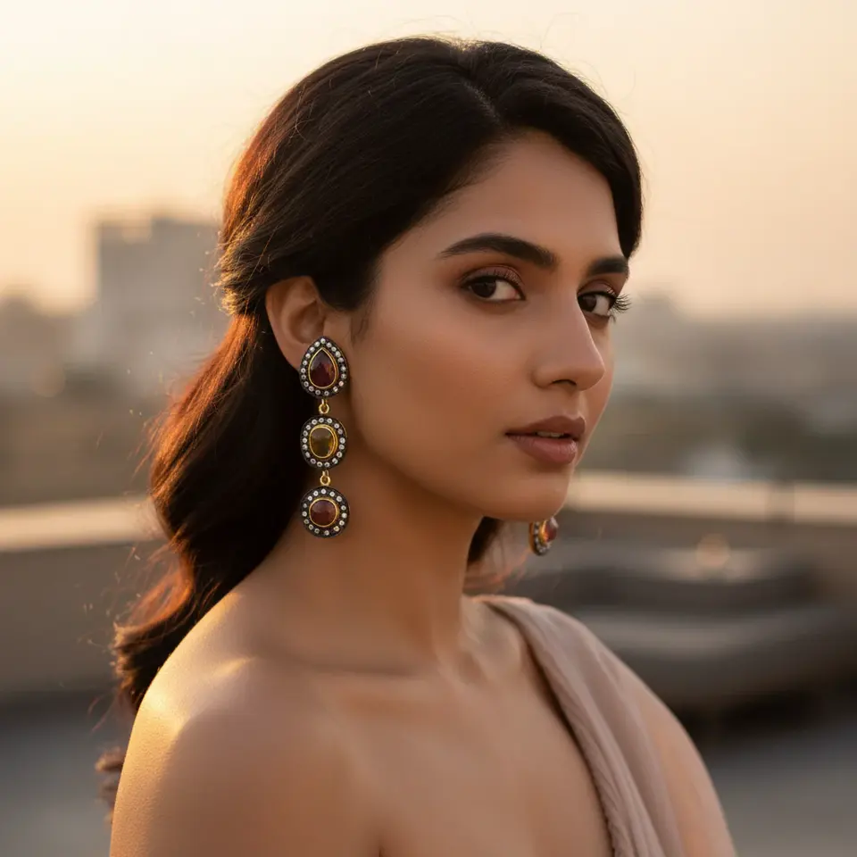 "Glamorous 18K Gold Ruby & Sapphire Chandelier/Drop Earrings for Women's Statement Jewelry Gifts"