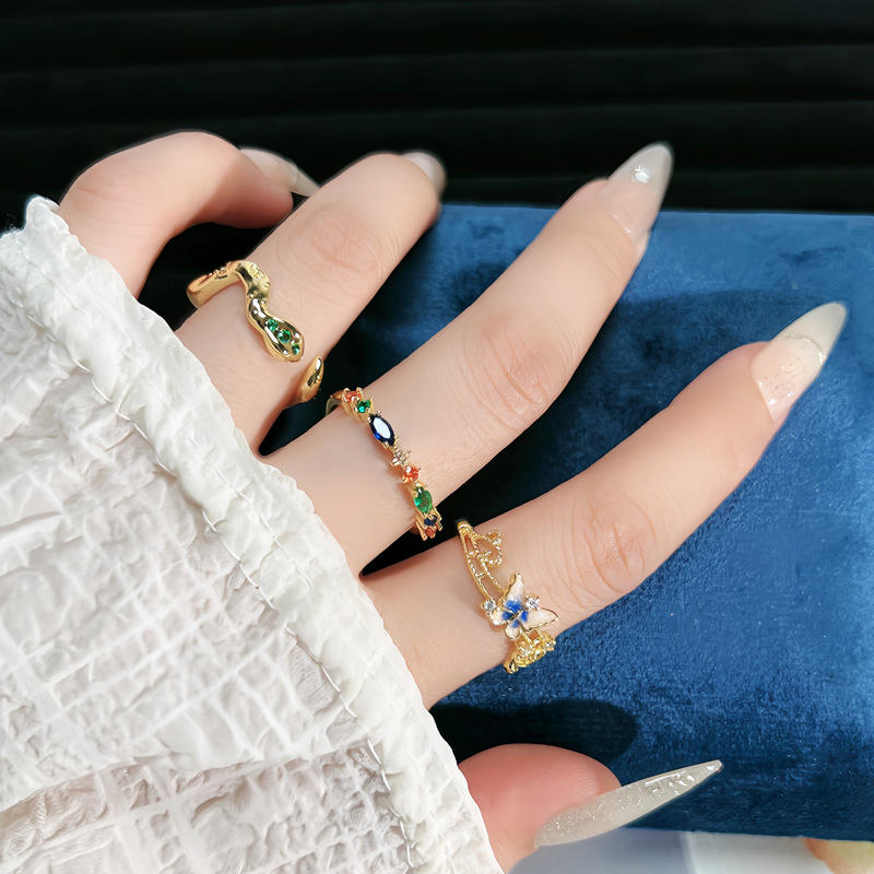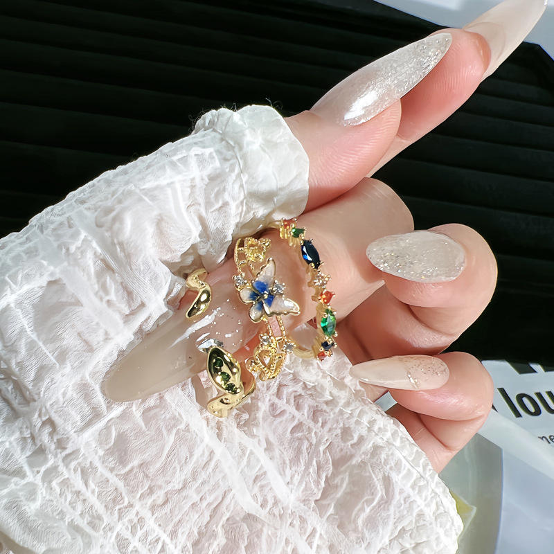 Bague en cuivre Fairycore glamour dégradé papillon Zircon dentelle bandes ouvertes empilables pour les looks de fête et de soirée