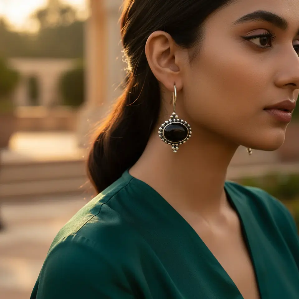 "Glamorous Gold-Plated Silver Onyx Oval Dangle Earrings for Women's Elegant Jewelry"