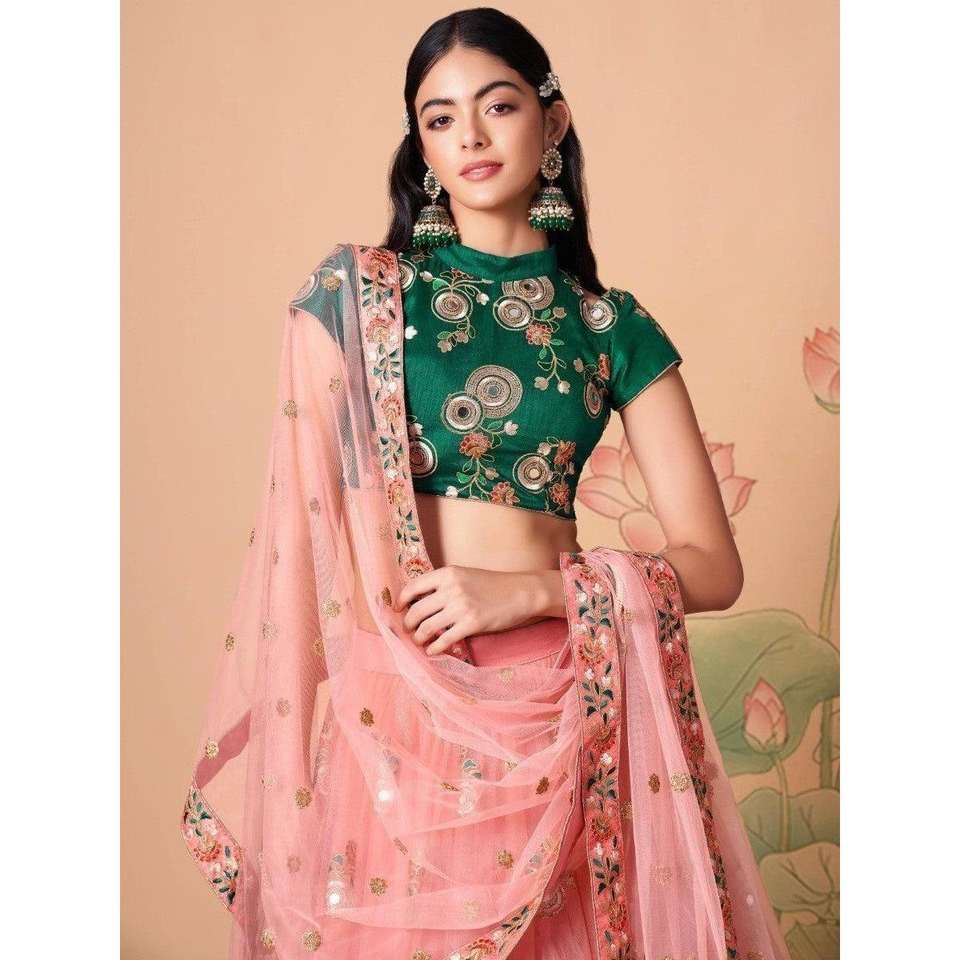 Filet de travail glamour pour miroir pêche Vêtements de mariage Lehenga Choli Miroir décoratif élégant Lehenga pour les mariées