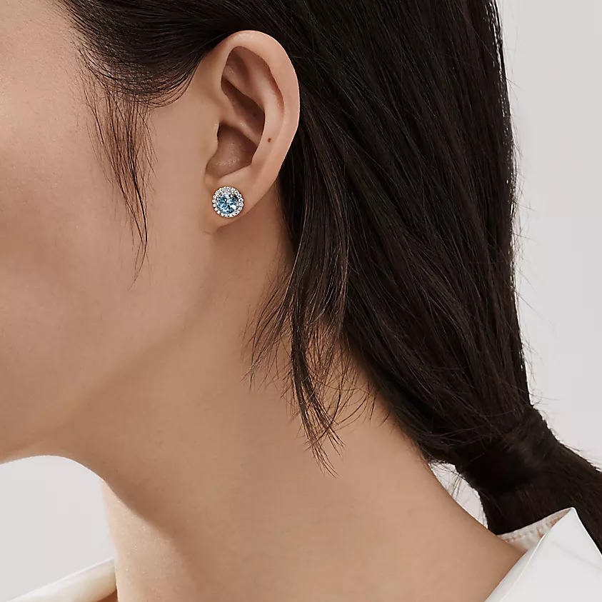 Nom du produit:Boucles d'oreilles à clous aigue-marine et diamants