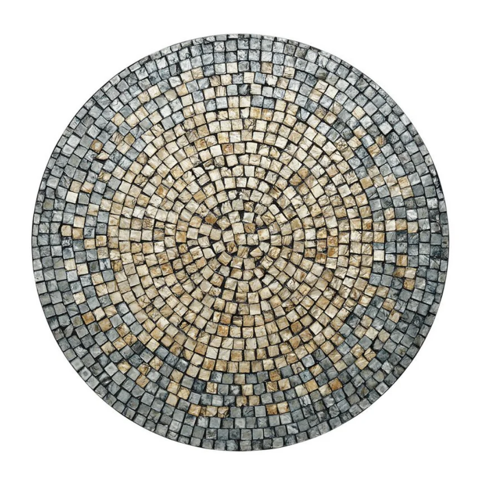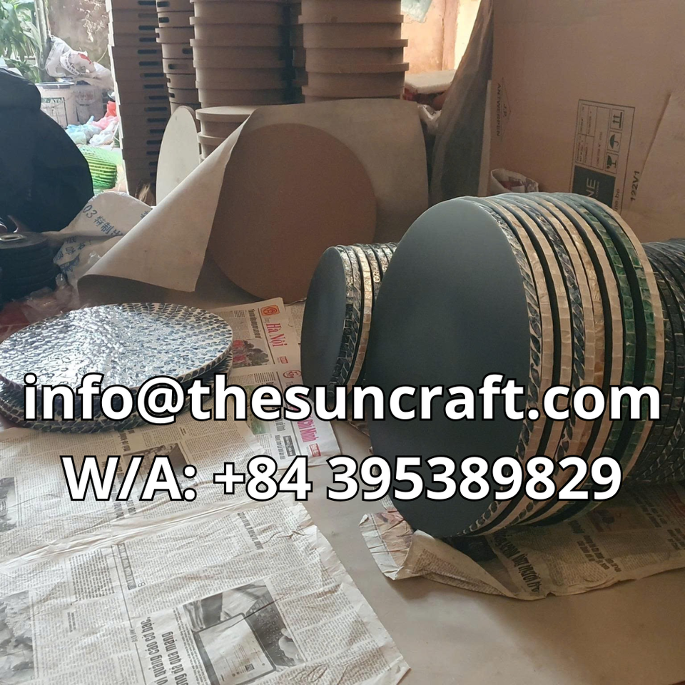 Sous-plat de mariage glamour avec incrustation de coquillages MOP pour la décoration de mariages d'hiver et les événements festifs élégants
