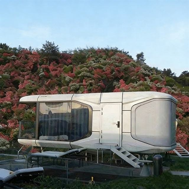 Cabines de glamping préfabriquées modulaires en conteneurs, mini-maisons capsules spatiales