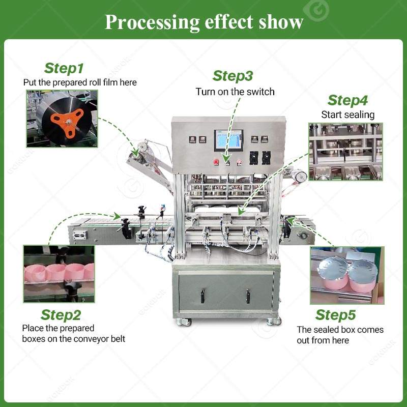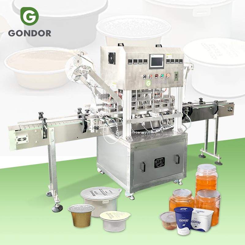 Machine de scellage automatique pour seaux en verre, plateaux, films MAP, rouleaux de tubes, bouteilles doubles, bocaux et feuilles d'aluminium