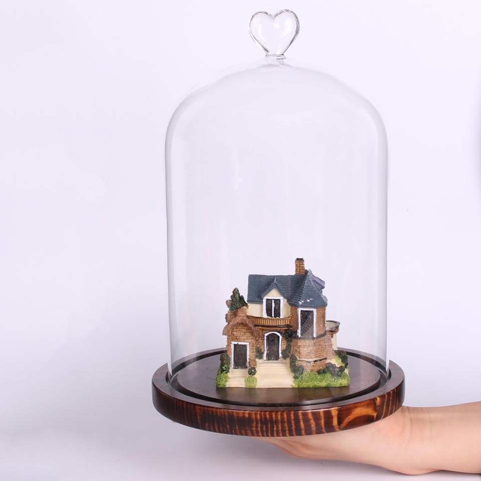Cloche en verre Dôme décoratif en verre Base en bois pour plantes Médailles Photos Objets de collection antiques Cadeau de fête des mères