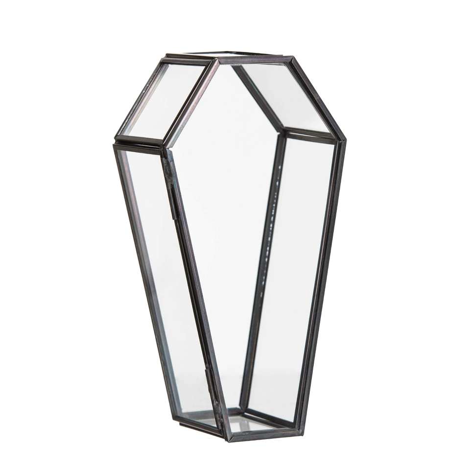 Boîte à bijoux en verre et métal de luxe Alam en forme de cercueil, taille personnalisable, option d'impression, élégante, pour ranger les bracelets et les bibelots, exportation